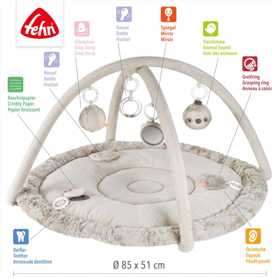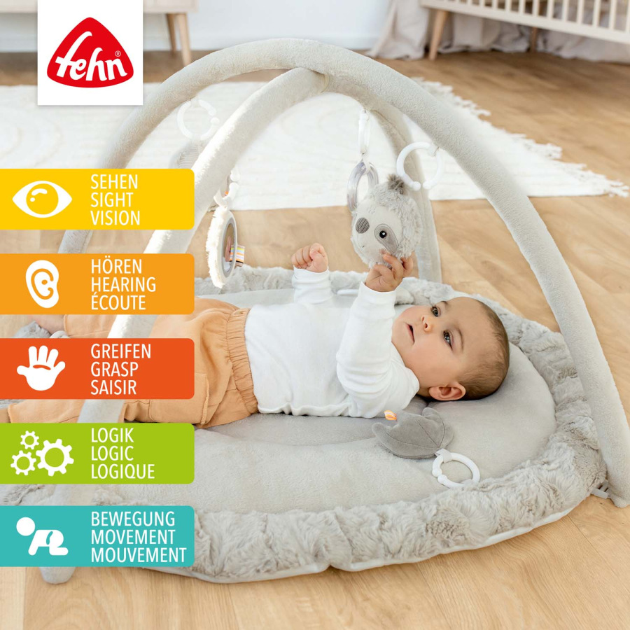 Interaktívna deka s leňochodom a priestorom na ležanie z rôznych hebkých materiálov pozýva bábätko k mojkaniu, skúmaniu a hre. Tri odnímateľné prvky so šuštivým papierom, pískatkom a hrkálkou na deke podporujú hmatové vnímanie a koordináciu ruka–oko.