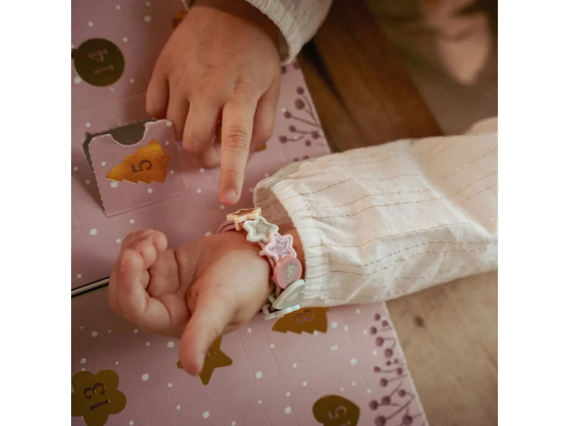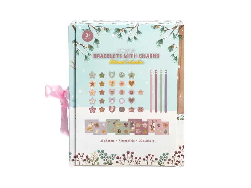 Očakávanie Vianoc ešte nikdy nebolo také zábavné a trblietavé! Adventný kalendár Little Dutch – Náramky v podobe elegantnej knižky ukrýva 24 okienok, v ktorých sa skrývajú malé prekvapenia pre každú dievčatko milujúce šperky. Každý deň objaví nový kúsok – náramo k, prívesok alebo samolepku – a postupne si vytvára vlastnú kolekciu. Tento originálny kalendár spája radosť z tvorenia s čarom Vianoc.