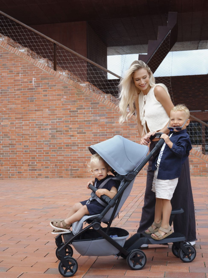 Joolz Aer² patrí medzi najľahšie kočíky na trhu – váži len 6,5 kg a je ideálny pre každodenné mestské prechádzky aj rodinné dovolenky. Vďaka ultra kompaktným rozmerom po zložení (44 × 53 × 23,5 cm) sa zmestí aj do kabínového batožinového priestoru lietadla. Praktický ramenný popruh uľahčí prenášanie a vďaka intuitívnemu skladaniu jednou rukou zvládnete kočík obsluhovať aj s dieťaťom v náručí.