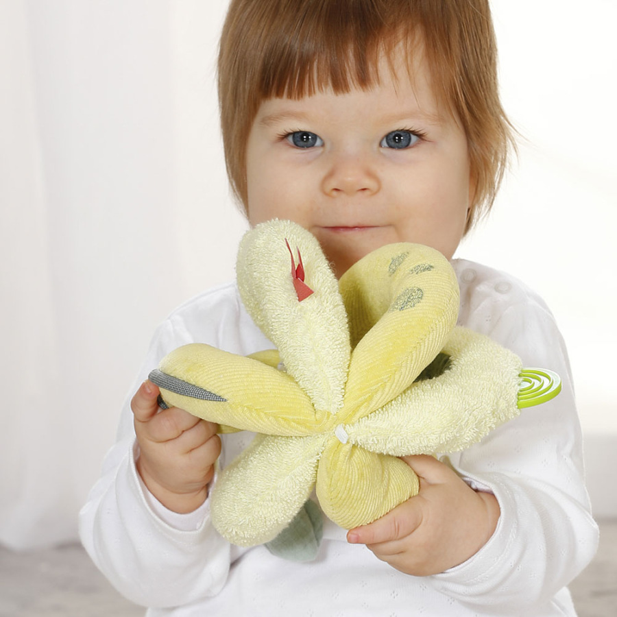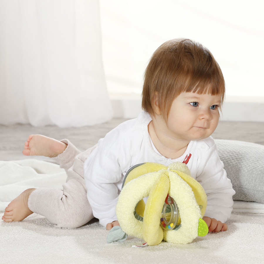 Mäkká lopta je vyrobená z kvalitného menčestra a froté, vyplnená je plyšom. Podporuje prirodzenú zvedavosť detí a priamo nabáda na guľenie, hádzanie a hranie. Balónik je vybavený hrkálkou, šuštiacim papierom a pískatkom . Pri hre podporuje zdravý vývoj motoriky, koordinácie, zmyslov a fantázie . Vďaka praktickej veľkosti je možné loptu ľahko prenášať a zmiestni sa do kočíka, autosedačky aj detskej postieľky.
