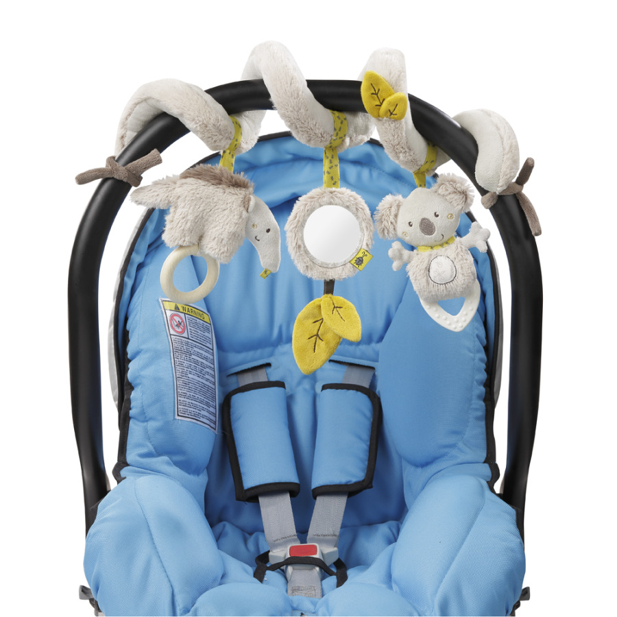 Aktivity špirála Australia je roztomilým doplnkom na hranie pre Vaše zlatíčko. Vďaka svojmu flexibilnému tvaru je možné ju využiť v kočíku, detskej postieľke, na cestách v aute, ale aj všade tam, kde to uznáte za vhodné. Obsahuje niekoľko prvkov, ktoré zamestnajú všetky vnemy dieťatka. Hrkálka zaujme zvedavé detské ušká, zrkadielko láka očká a využitie rôznych materiálov a tiež integrovaného hryzátka, sa postarajú o to, že hračka zamestná naozaj všetky zmysly Vášho maličkého.
