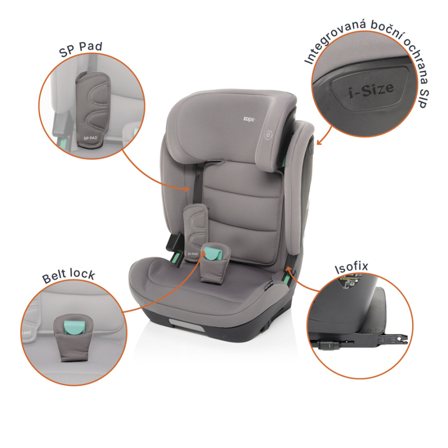 autosedačka vybavená SP PAD, ktoré redukujú zaťaženie hlavičky, krčnej chrbtice