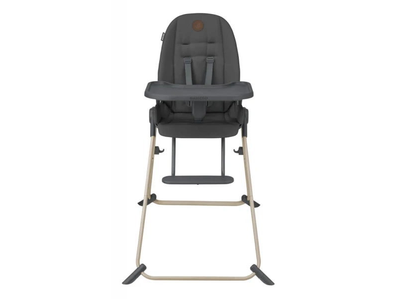 Mäkko polstrovaná sedacia podložka s nastaviteľnými 5-bodovými bezpečnostnými pásmi a opierka nôh poskytujú dieťaťu pohodlné sedenie. Jedálenský pult ponúka tri pozície podľa veľkosti dieťaťa a keď ho nepoužívate, môžete ho zavesiť na zadnú stranu stoličky.