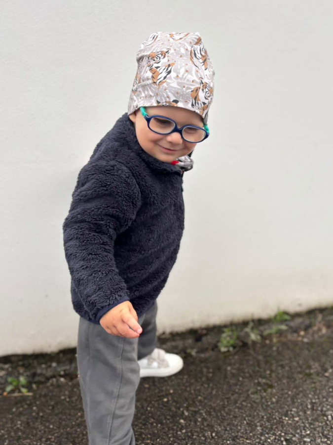Bezpečnostné upozornenie pre produkt: - NEPOUŽÍVAJTE čiapku, ak je poškodená. Pred každým použitím skontrolujte, či čiapka nemá žiadne poškodenia, ako sú roztrhnuté švy alebo uvoľnené časti, ktoré by mohli byť nebezpečné. - Dávajte pozor na pohodlie dieťaťa. Uistite sa, že čiapka nie je príliš tesná alebo príliš voľná. Čiapka by mala pohodlne sedieť na hlave, aby nebránila prirodzenému pohybu alebo dýchaniu. - Nikdy nezanechávajte dieťa bez dozoru, keď má na hlave čiapku s dlhými šnúrkami alebo ozdobami. Dlhé šnúrky alebo strapce môžu predstavovať nebezpečenstvo zadrhnutia alebo škrtenia. - NEPOUŽÍVAJTE čiapku ako hračku. Dieťa by nemalo čiapku žuť ani hrať sa s ňou, aby sa predišlo možnosti jej poškodenia alebo požitia malých častí. - Pravidelne kontrolujte čiapku na opotrebovanie. Ak čiapka vykazuje známky opotrebenia, opotrebených elastických pásikov alebo poškodení, okamžite ju vymeňte. - Tento produkt je určený na estetické a ochranné účely. Používajte ho s náležitým dohľadom dospelých a podľa pokynov výrobcu.