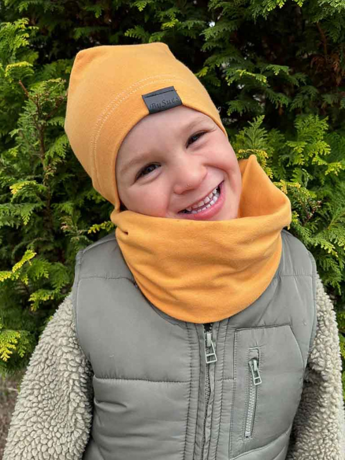 Bavlnená detská čiapka jednovrstvová BySues HORČICOVÁ.