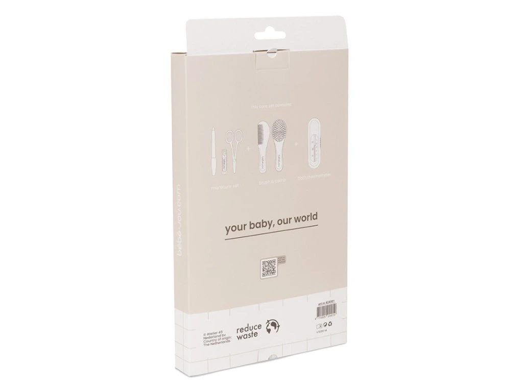 Hygienická sada Bébé-Jou ponúka rodičom všetko potrebné pre každodennú starostlivosť o pokožku, nechty a vlásky novorodenca. Vďaka kvalitnému spracovaniu a jemným materiálom je ideálna pre najcitlivejšie detičky. Elegantné ekologické balenie z nej robí aj krásny darček pri narodení dieťaťa.
