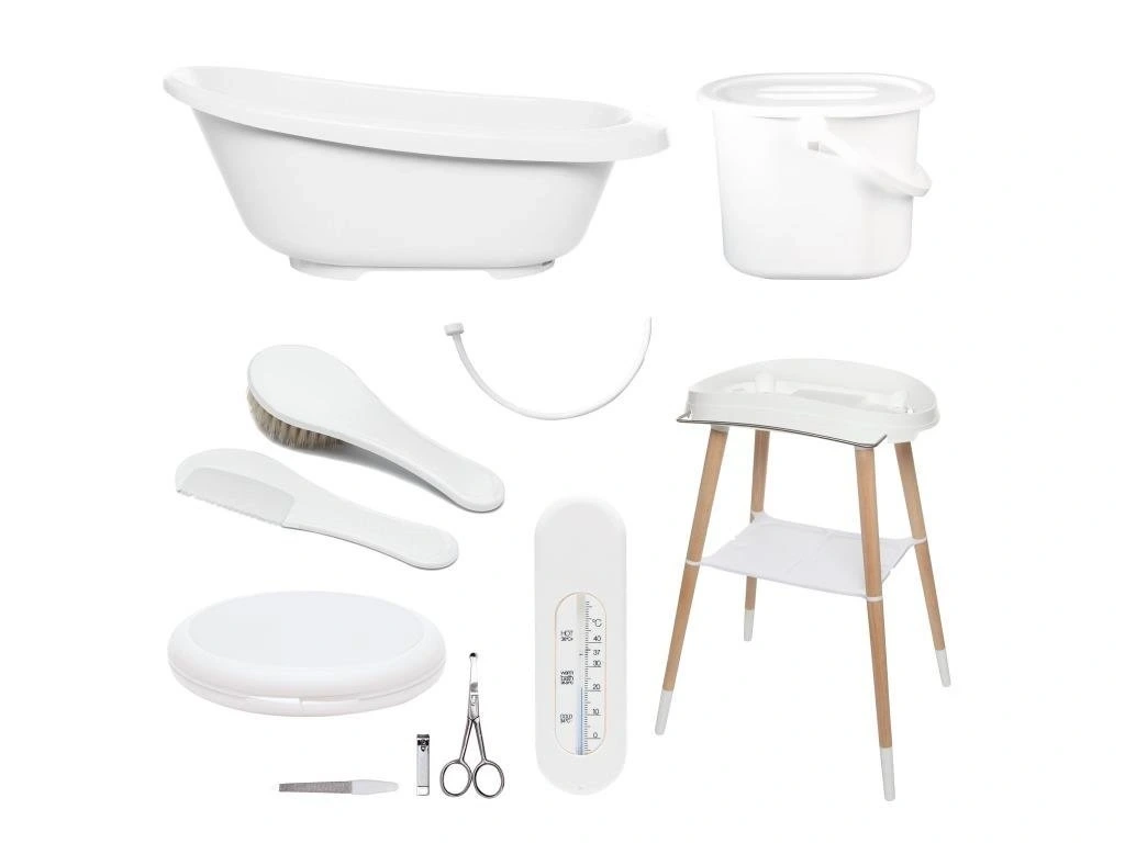 • Súčasťou balenia: vanička, stojan, kýblik na plienky, sada na manikúru, hrebeň, kefa, teplomer do vaničky, vypúšťacia hadica