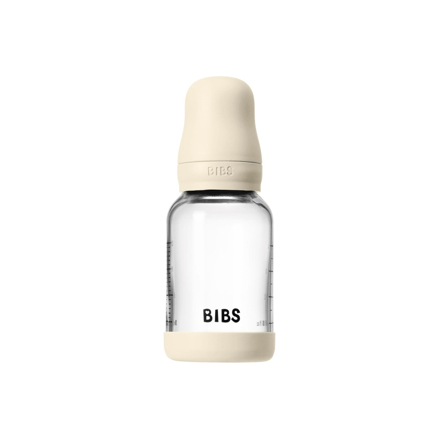 BIBS Antikoliková sklenená fľaša so silikónovým cumlíkom 120ml, Ivory