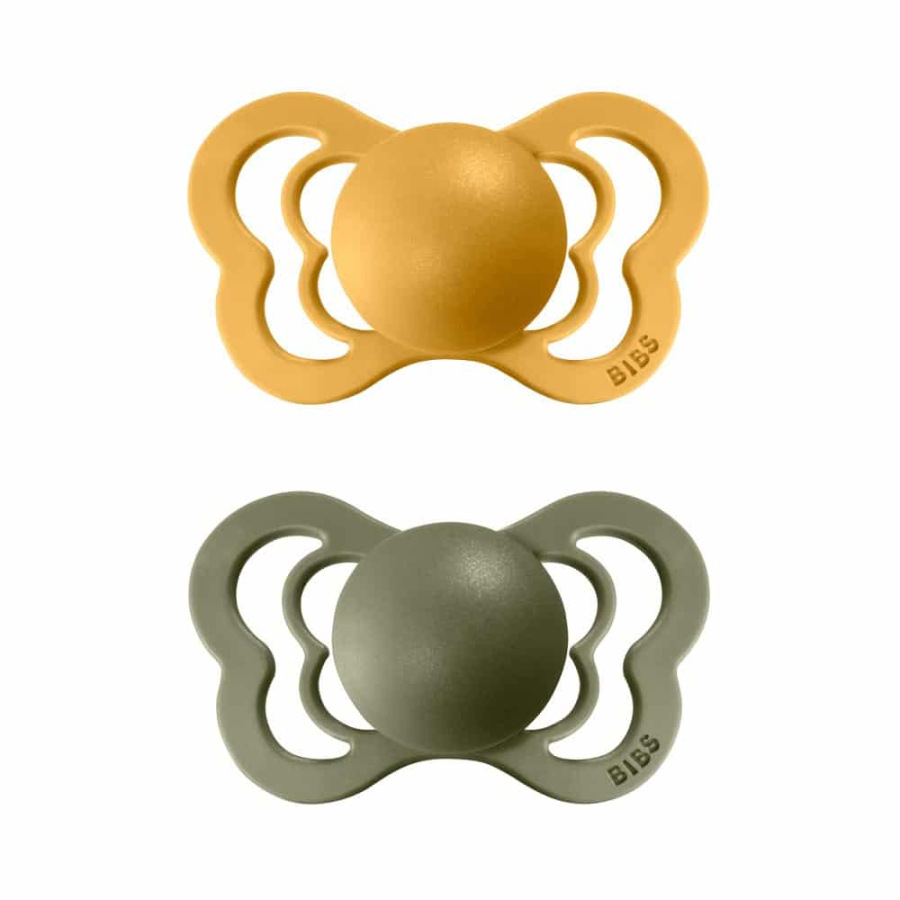 BIBS Couture Honey Bee/Olive ortodont. cumlík zo silikónu 2ks, veľkosť 1