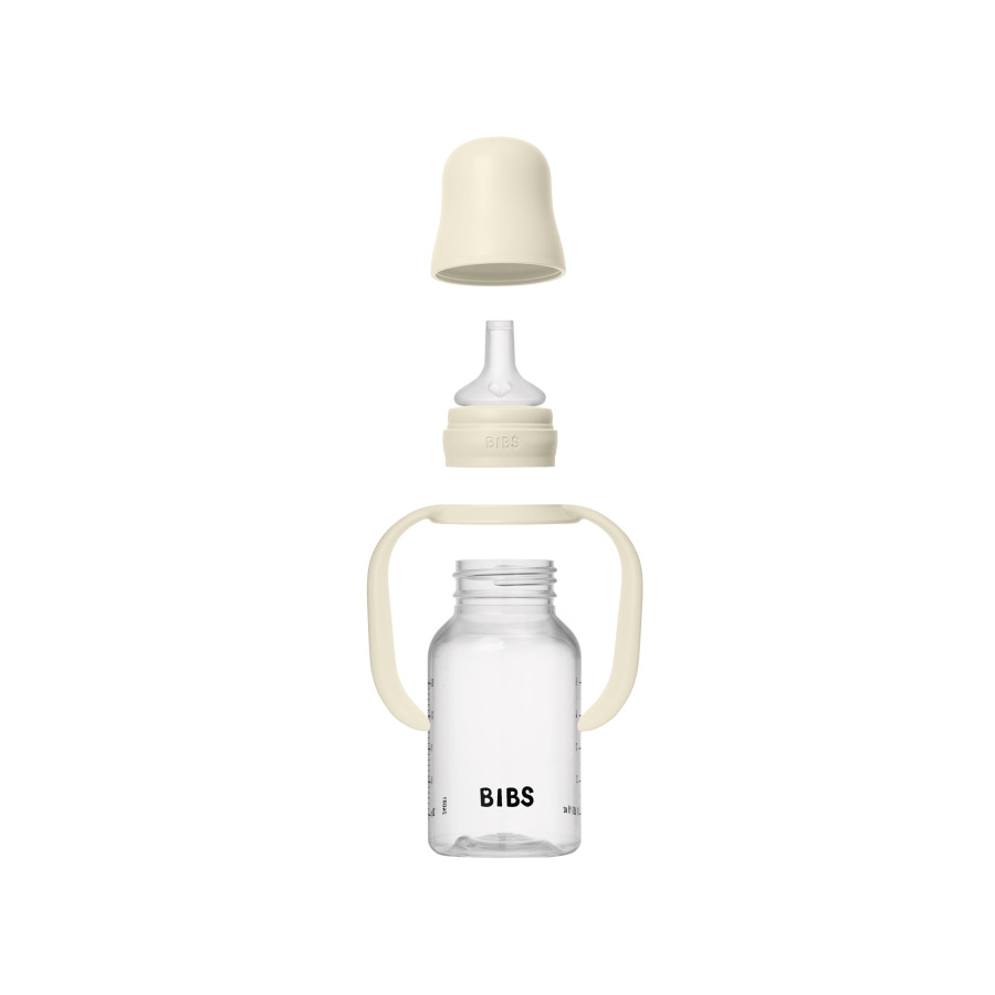 BIBS detská fľaša so silikónovým náustkom 150 ml je navrhnutá ako tréningový pohárik, ktorý pomáha deťom plynulo prejsť z dojčenskej fľaše k pitiu z otvoreného pohára. Ergonomické ušká uľahčujú uchopenie malými rúčkami a podporujú rozvoj jemnej motoriky aj samostatnosti pri pití. Mäkký silikónový náustok s membránou je šetrný k ďasnám a zároveň pomáha udržať tekutinu bezpečne vo vnútri fľaše.