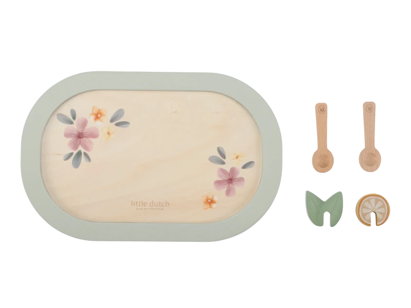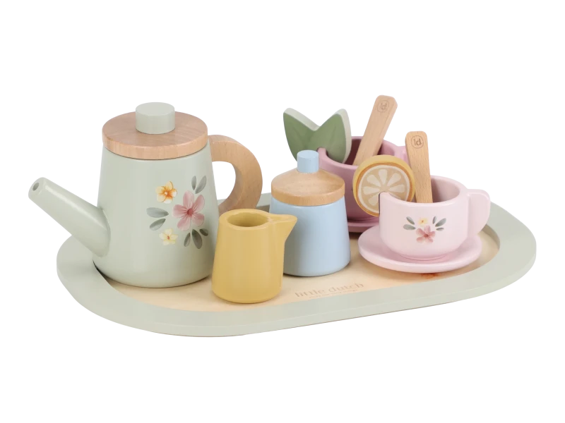 Drevený čajový set s jemnou kvetinovou potlačou je ideálnou hračkou pre deti, ktoré rady napodobňujú dospelých a vytvárajú si vlastné príbehy. Ponúka priestor pre hru na návštevy, čaj o piatej či rodinné posedenia s plyšákmi a bábikami. Vďaka kvalitnému spracovaniu a nadčasovému dizajnu značky Little Dutch podporuje fantáziu, sociálne zručnosti a radosť zo spoločnej hry v každej detskej izbe.