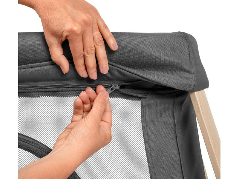 - Bočnice zo sieťovaného materiálu umožňujú výhľad a bezpečnú kontrolu dieťaťa