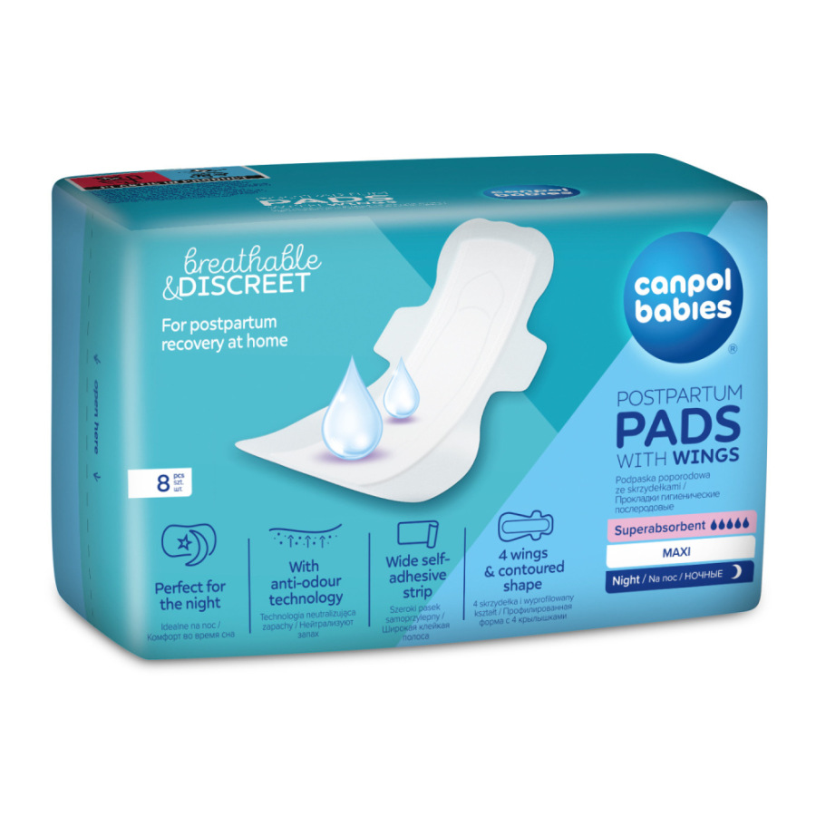 Predĺžená veľkosť popôrodnej vložky s krídelkami 42 cm je prispôsobená tak, aby dobre chránila pred pretečením aj v ľahu. Popôrodné vložky Canpol Babies s krídelkami majú hrúbku len 2,2 mm, ale poskytujú až 100% ochranu proti pretečeniu a diskrétnosť.