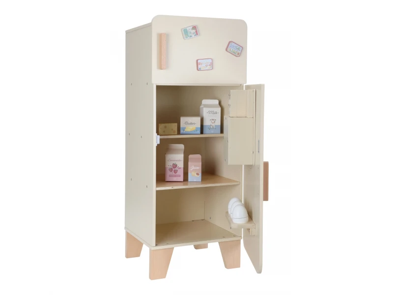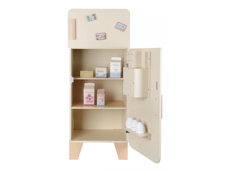 Krásna drevená chladnička Little Dutch prinesie deťom realistickú zábavu a stane sa ozdobou každej detskej kuchynky, obchodu či reštaurácie. Má dostatok priestoru na uloženie potravín, praktickú priehradku na vajíčka a nechýba ani mraznička s výrobníkom ľadu. Vďaka funkčným prvkom sa deti hravou formou učia o skladovaní potravín a fungovaní domácnosti.