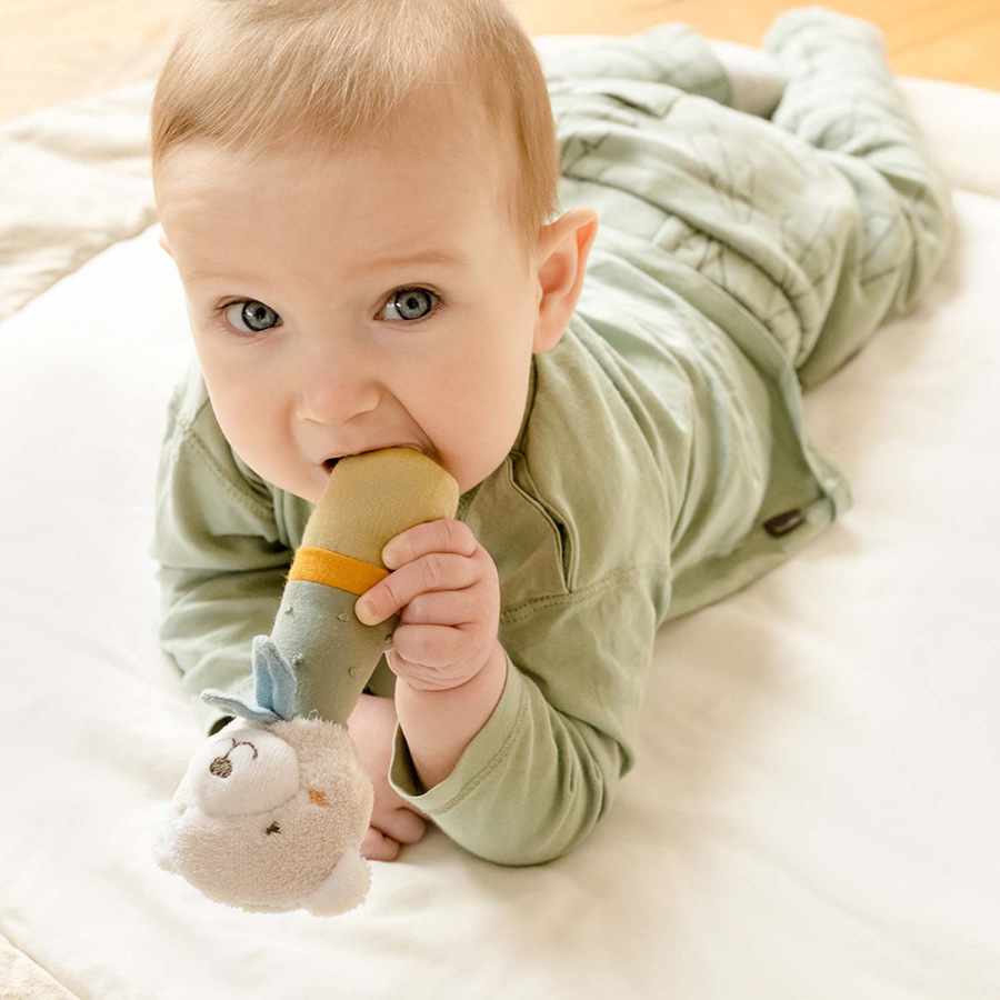 Detská hrkálka je ideálna pre uchopenie a maznanie a je vždy s vašim bábätkom, či už v postieľke, v autosedačke alebo v kočíku. Podporuje hmat a sluch a motoriku dieťaťa. Príjemné zvuky hrkálky ukradnú pozornosť dieťatka a dokážu ho rozptýliť aj v situáciách, keď ho niečo rozosmutnilo natoľko, že sa rozplakalo.