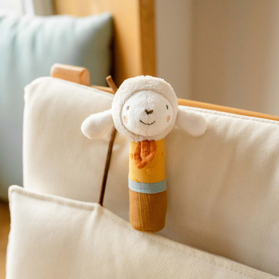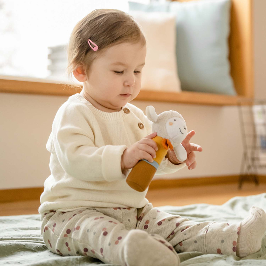 Detská hrkálka je ideálna pre uchopenie a maznanie a je vždy s vašim bábätkom, či už v postieľke, v autosedačke alebo v kočíku. Podporuje hmat a sluch a motoriku dieťaťa. Príjemné zvuky hrkálky ukradnú pozornosť dieťatka a dokážu ho rozptýliť aj v situáciách, keď ho niečo rozosmutnilo natoľko, že sa rozplakalo.