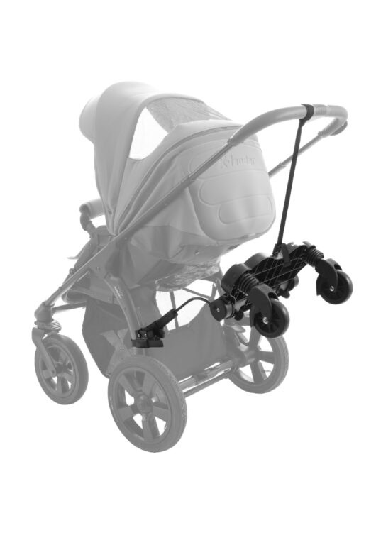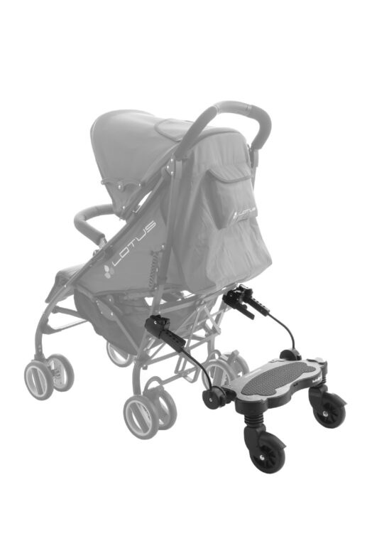 Stúpadlo za kočík je ideálnym pomocníkom pre rodičov s dvoma deťmi, keď starší súrodenec už nechce sedieť v kočíku, ale rýchlo sa unaví pri chôdzi. Jednoduché prichytenie ku väčšine kočíkov aj golfových palíc umožňuje flexibilné používanie bez potreby výmeny kočíka. Vďaka nastaviteľnej šírke a výške sa prispôsobí rôznym typom konštrukcií.