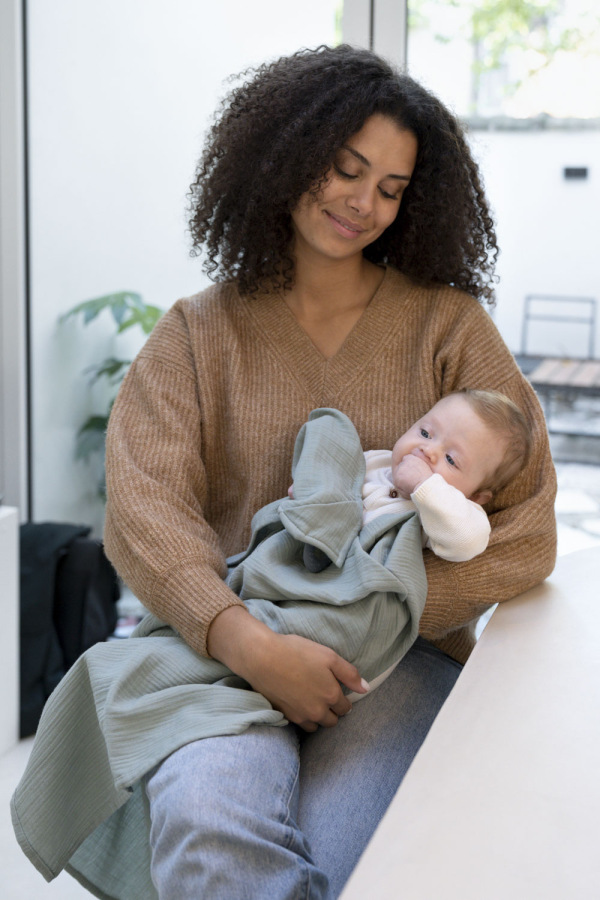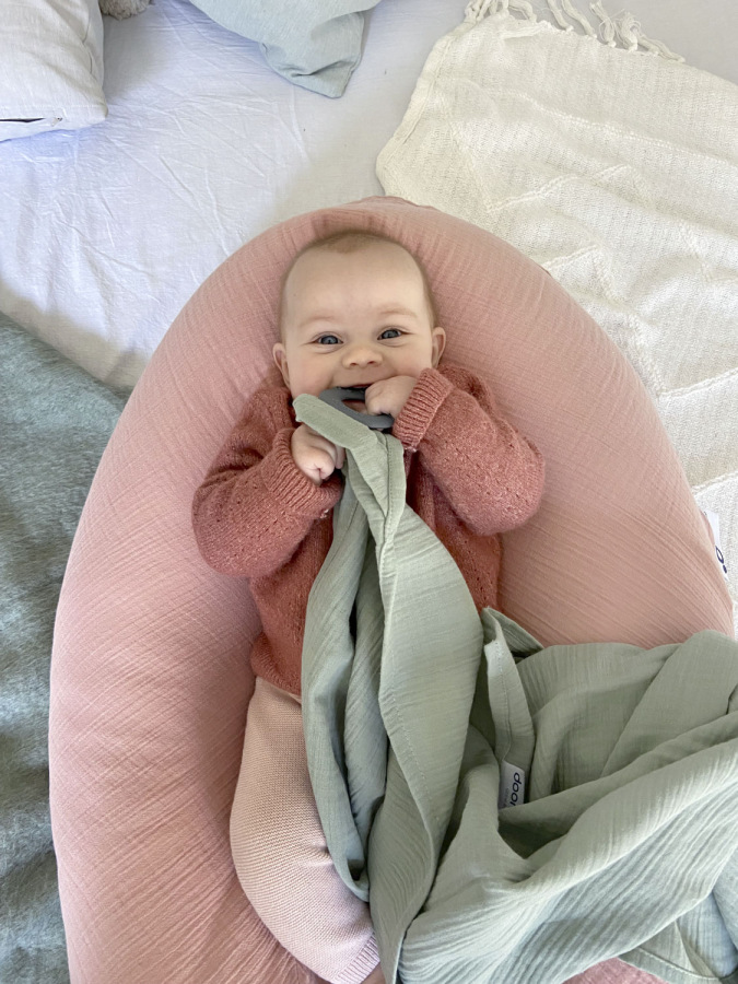 Viacúčelová dojčiaca deka Mom’n Play vám umožní dojčiť dieťa kdekoľvek a v