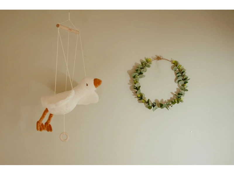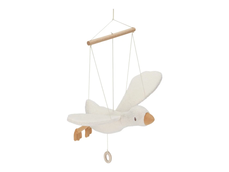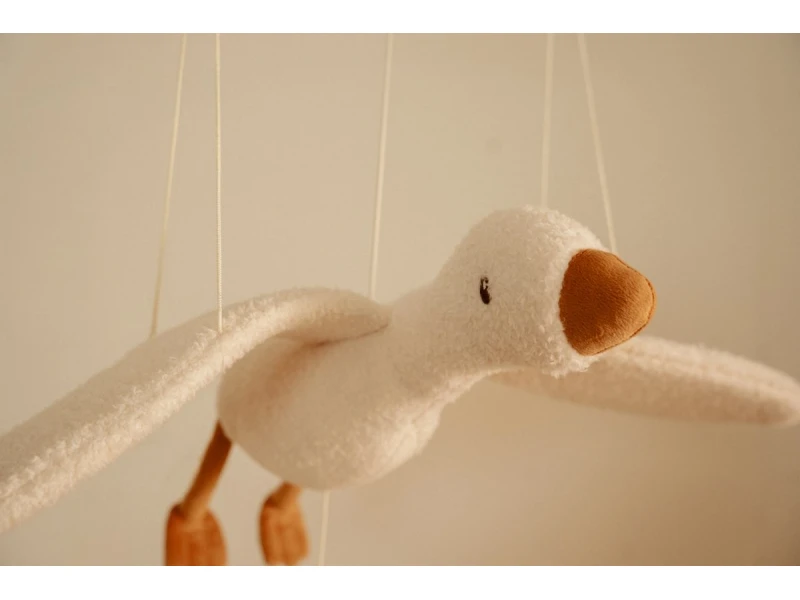 Vneste do detskej izbičky pocit pokoja a kúzla s lietajúcou husou Little Dutch Newborn Naturals. Táto ľahká závesná dekorácia vytvára dojem, že sa hus vznáša vo vzduchu – ideálna nad postieľku alebo do hracieho kútika. Jej tlmené prírodné farby a mäkké tvary vytvoria pokojnú atmosféru pre bábätká od narodenia.