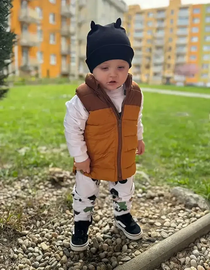 Bezpečnostné upozornenie pre produkt: - NEPOUŽÍVAJTE čiapku, ak je poškodená. Pred každým použitím skontrolujte, či čiapka nemá žiadne poškodenia, ako sú roztrhnuté švy alebo uvoľnené časti, ktoré by mohli byť nebezpečné. - Dávajte pozor na pohodlie dieťaťa. Uistite sa, že čiapka nie je príliš tesná alebo príliš voľná. Čiapka by mala pohodlne sedieť na hlave, aby nebránila prirodzenému pohybu alebo dýchaniu. - Nikdy nezanechávajte dieťa bez dozoru, keď má na hlave čiapku s dlhými šnúrkami alebo ozdobami. Dlhé šnúrky alebo strapce môžu predstavovať nebezpečenstvo zadrhnutia alebo škrtenia. - NEPOUŽÍVAJTE čiapku ako hračku. Dieťa by nemalo čiapku žuť ani hrať sa s ňou, aby sa predišlo možnosti jej poškodenia alebo požitia malých častí. - Pravidelne kontrolujte čiapku na opotrebovanie. Ak čiapka vykazuje známky opotrebenia, opotrebených elastických pásikov alebo poškodení, okamžite ju vymeňte. - Tento produkt je určený na estetické a ochranné účely. Používajte ho s náležitým dohľadom dospelých a podľa pokynov výrobcu.