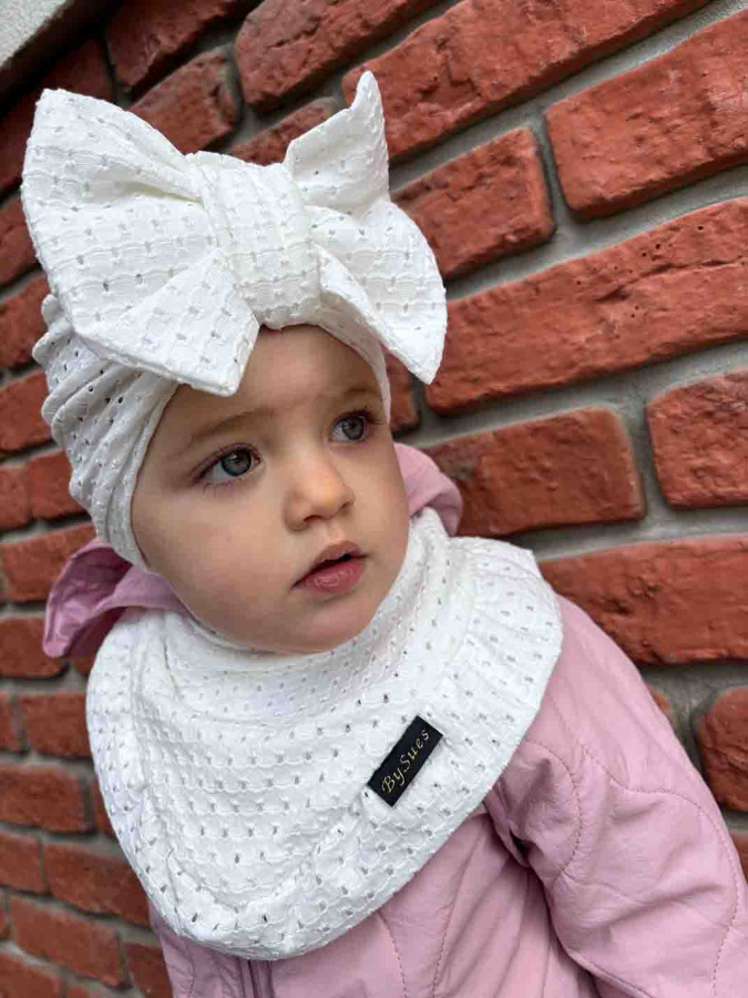 Detská čiapka / Turban s Mašľou, madeira BIELA