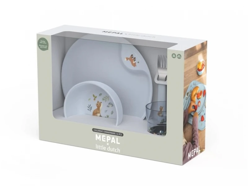 Táto 6-dielna jedálenská súprava Little Dutch Forest Friends je ideálna pre deti, ktoré chcú stolovať samostatne a s radosťou. Kombinuje praktický tanier, misku, téglik a detský príbor, takže ponúka kompletnú výbavu pre každodenné jedlo doma aj na cestách. Jemná lesná potlač podporuje pozitívny vzťah k stolovaniu už od útleho veku.
