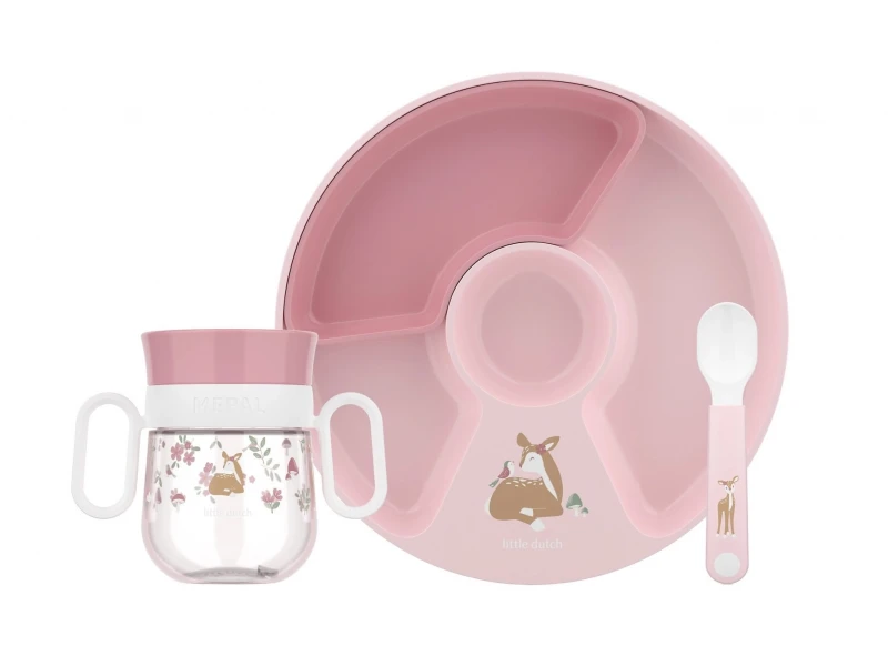 Táto 3-dielna jedálenská súprava Little Dutch Fairy Garden je ideálna pre bábätká, ktoré začínajú objavovať svet samostatného jedenia. Kombinuje praktický delený tanier, trénovací hrnček so systémom 360° a lyžičku, aby stolovanie bolo jednoduchšie, bezpečnejšie a zábavnejšie. Jemný záhradný dizajn podporuje chuť do jedla aj príjemné rutiny pri stole.