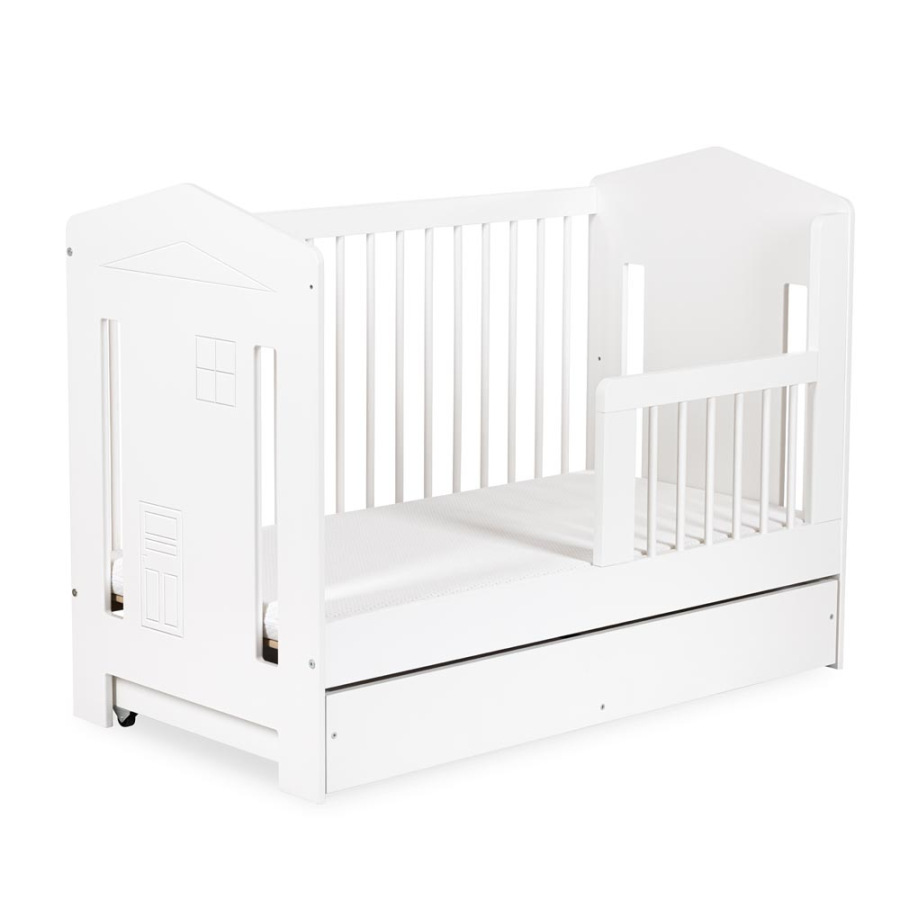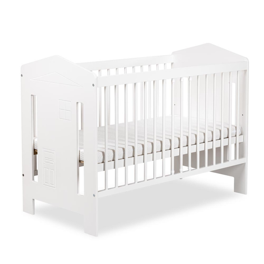 Detská postieľka IDA 120 × 60 cm s motívom domčeka pre bezpečný spánok bábätka
