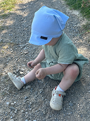 - Nenechávajte dieťa bez dozoru, keď má šatku na hlavičke. Uistite sa, že šatka je správne upevnená, aby sa zabránilo jej sklznutiu alebo zakrytí dýchacích ciest dieťaťa.