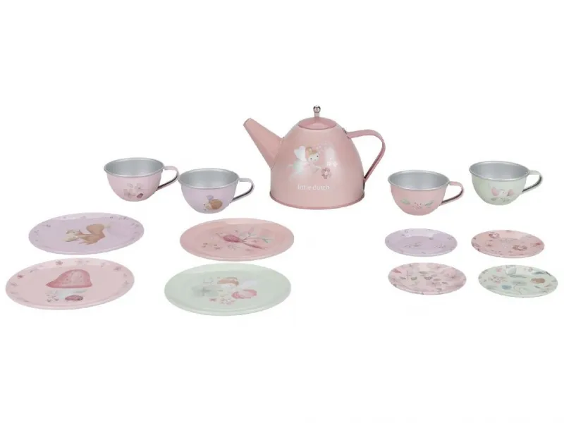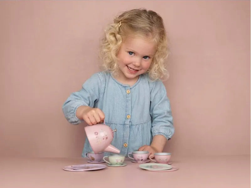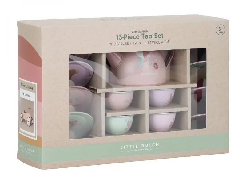 Čajový set Fairy Garden od Little Dutch je krásna a kvalitne spracovaná sada, ktorá rozžiari každé detské čajové posedenie. Kovová konvička a štyri hrnčeky s podšálkami majú jemné ilustrácie zo života na záhrade a pozývajú deti do sveta fantázie, rozprávkových hostiniek a rolových hier. Set je ideálny pre malých hostiteľov a hostiteľky od 3 rokov.