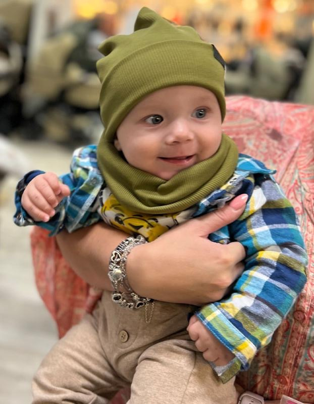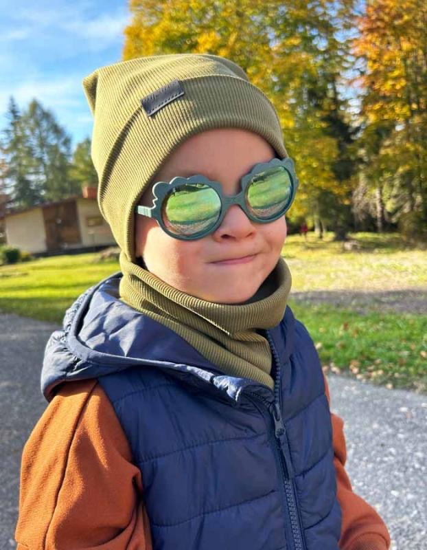 Detský nákrčník rebrovaná bavlna - OLIVOVÁ