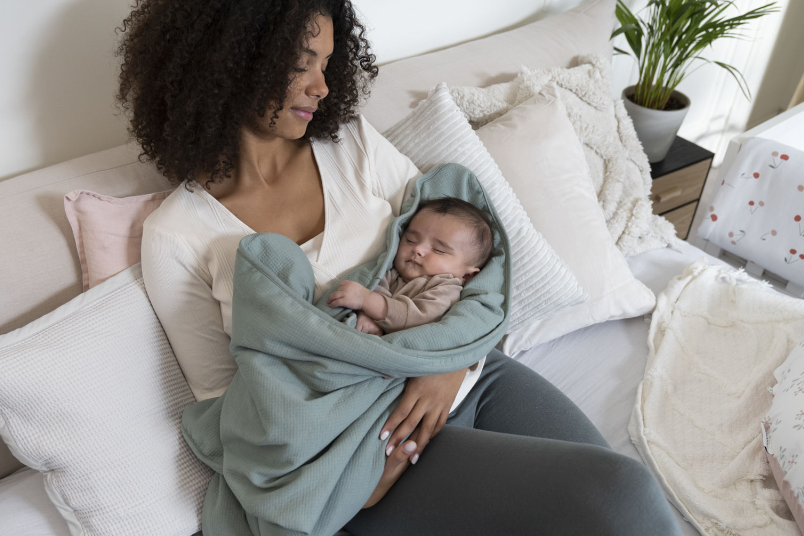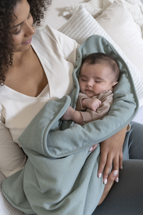 Veľmi mäkká deka, ideálna na zavinutie dieťaťa doma alebo počas prechádzok vonku.