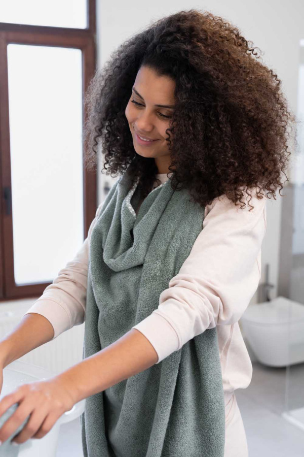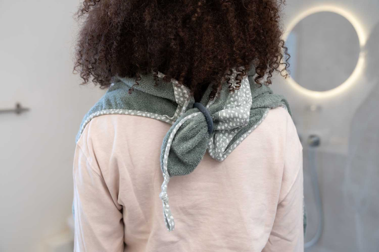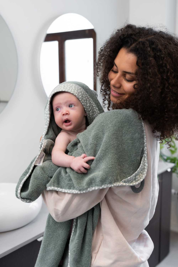 Uterák Doomoo Dry&Play je dostatočne veľký, aby sa do neho po kúpeli zababušili aj väčšie deti. Je vyrobený z mäkkej organickej bavlny a má certifikát OEKO-Tex.