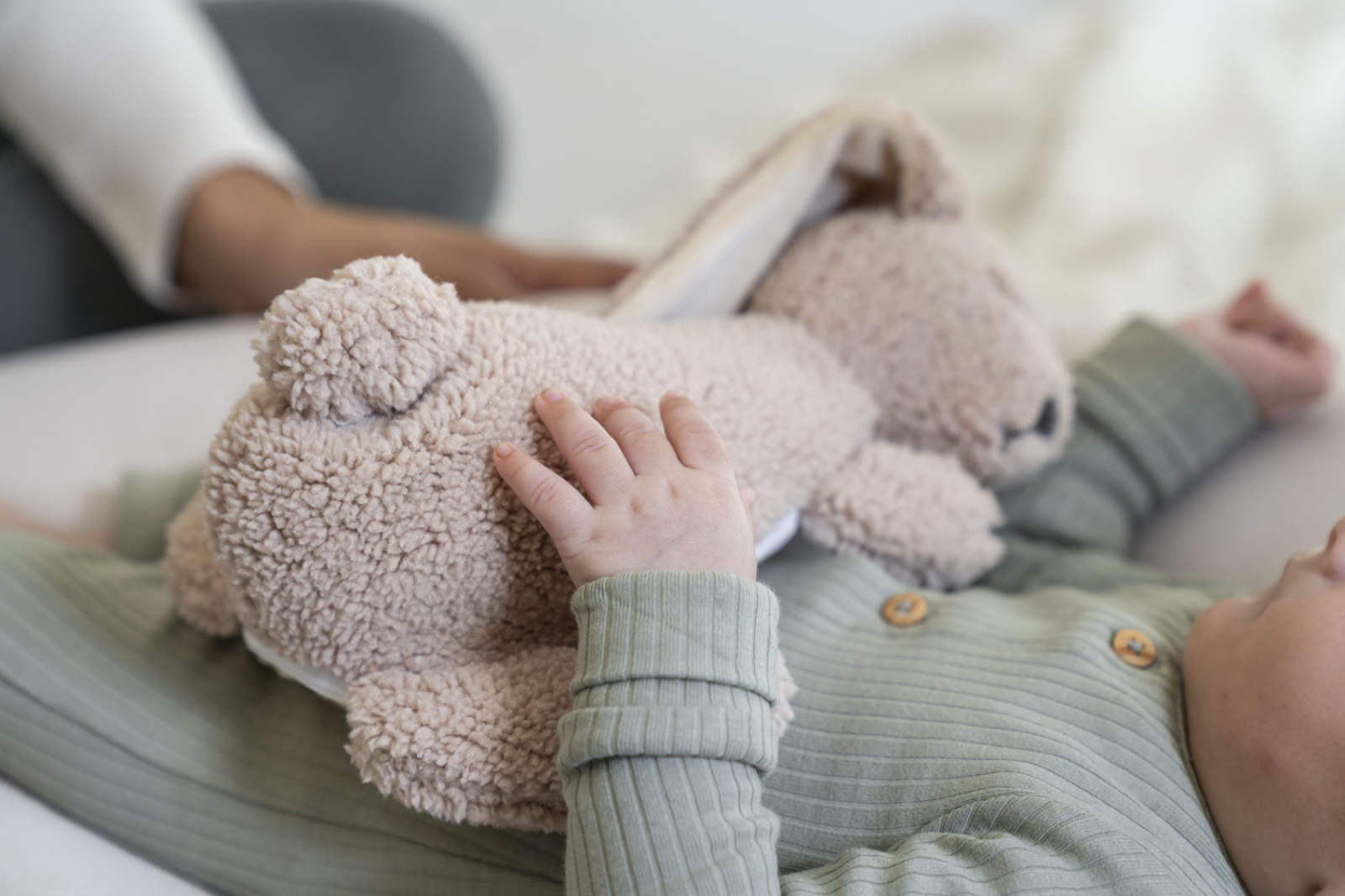 - pri umiestnení do postieľky uvoľňuje jemné teplo, ktoré napomôže uvoľnenie a rýchle zaspanie