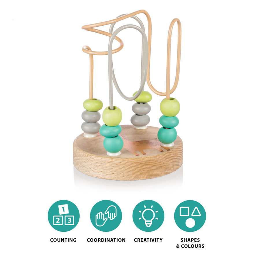 Posúvaním loptičiek sa deti môžu naučiť aj prvé počítanie a rozpoznávanie farieb. Aktivity sú vyrobené z kvalitného dreva a farieb na vodnej báze.