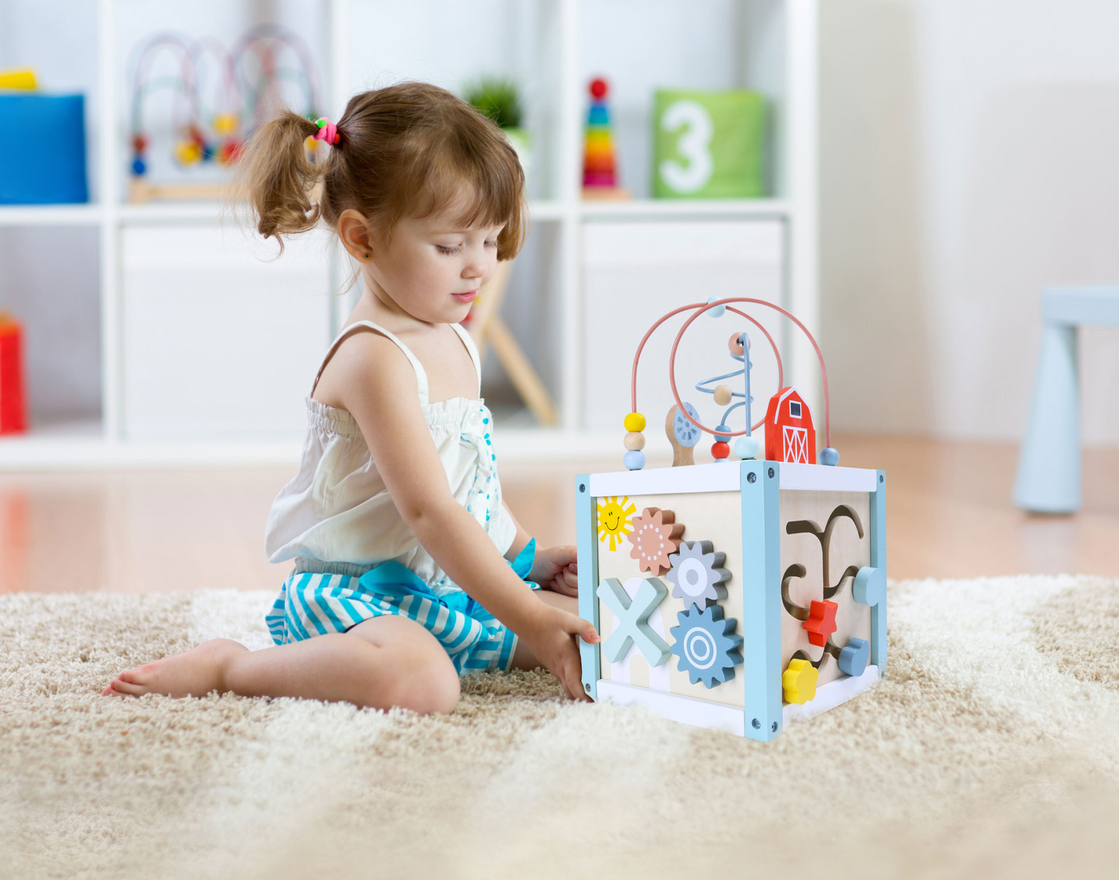 prirodzeným spôsobom naučia tvary, farby, počítanie a zvieratá. Hra s kockou