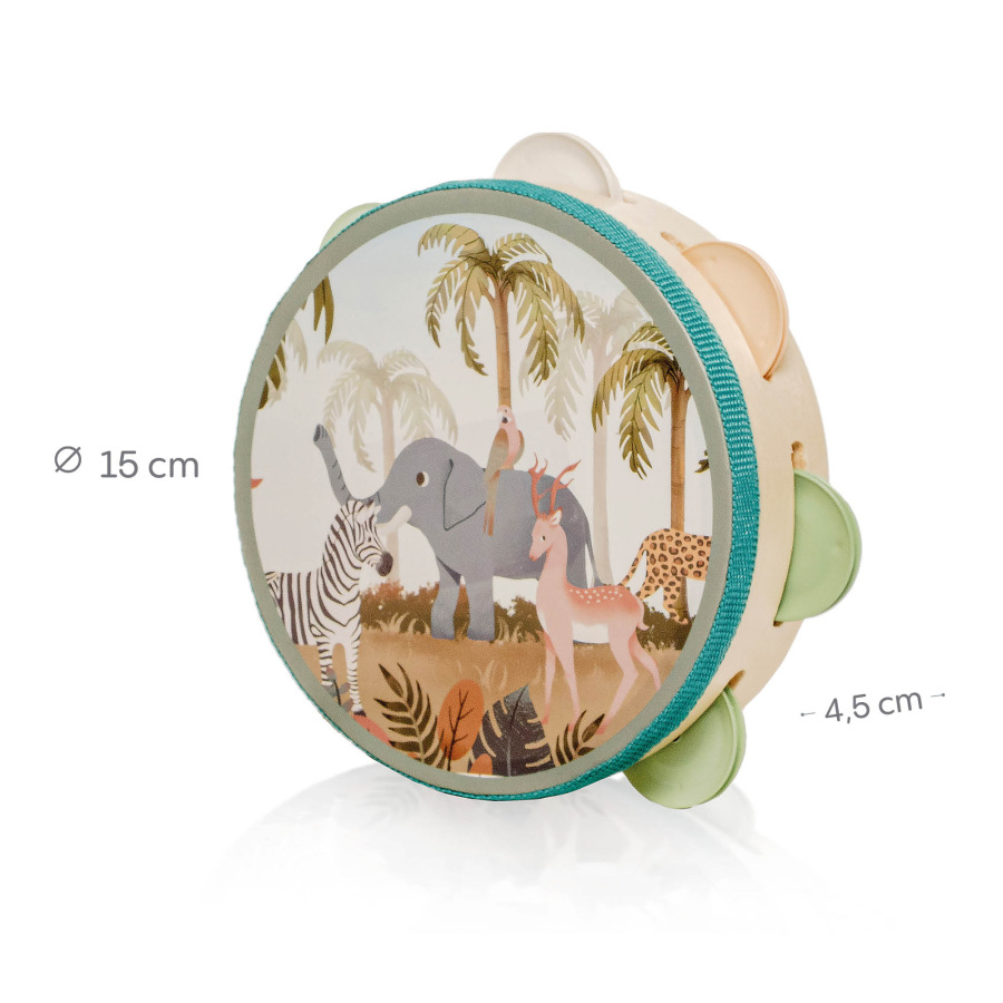 Tamburína je ľahká, ľahko uchopiteľná a bezpečná aj pre tie najmenšie deti. Vďaka svojej veľkosti ju dieťa môže pohodlne držať oboma alebo jednou rukou. Ideálna na hru doma, na cestách aj pri skupinových aktivitách.