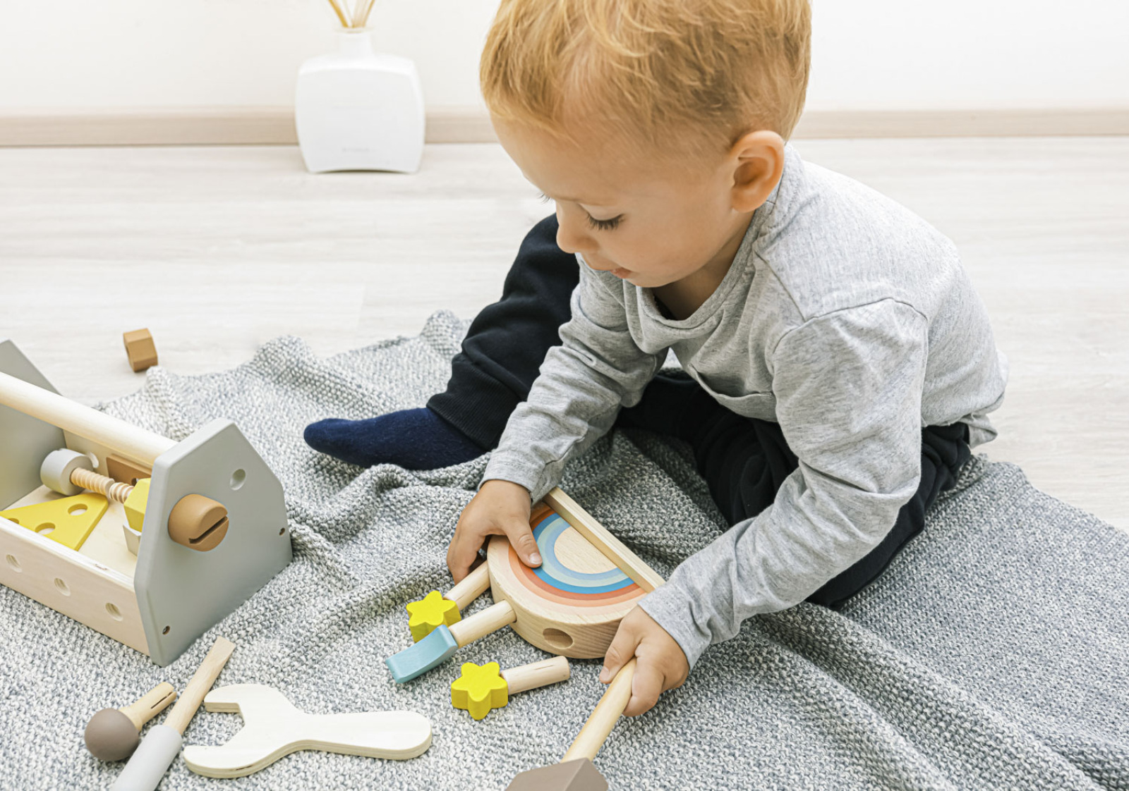 Drevená sada náradia pre malých zvedavých staviteľov.