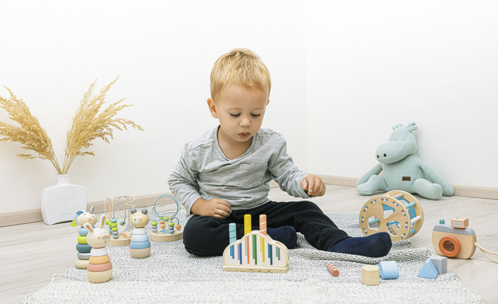 Drevená vysúvacia hračka pre zvedavé deti.