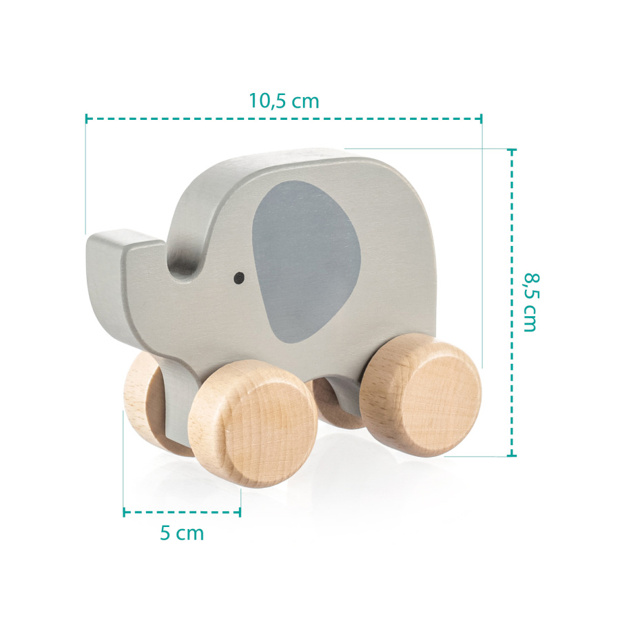 Ľahký a kompaktný jazdiaci slon je ideálnou hračkou do malých detských rúk. Je vyrobený z kvalitného prírodného dreva a natretý farbami na vodnej báze. Veľké, odolné kolesá si hravo poradia s kobercom, drevenou podlahou aj terénom ihriska.