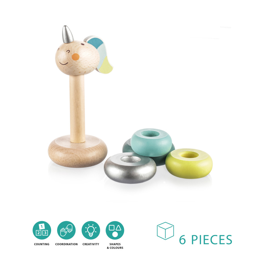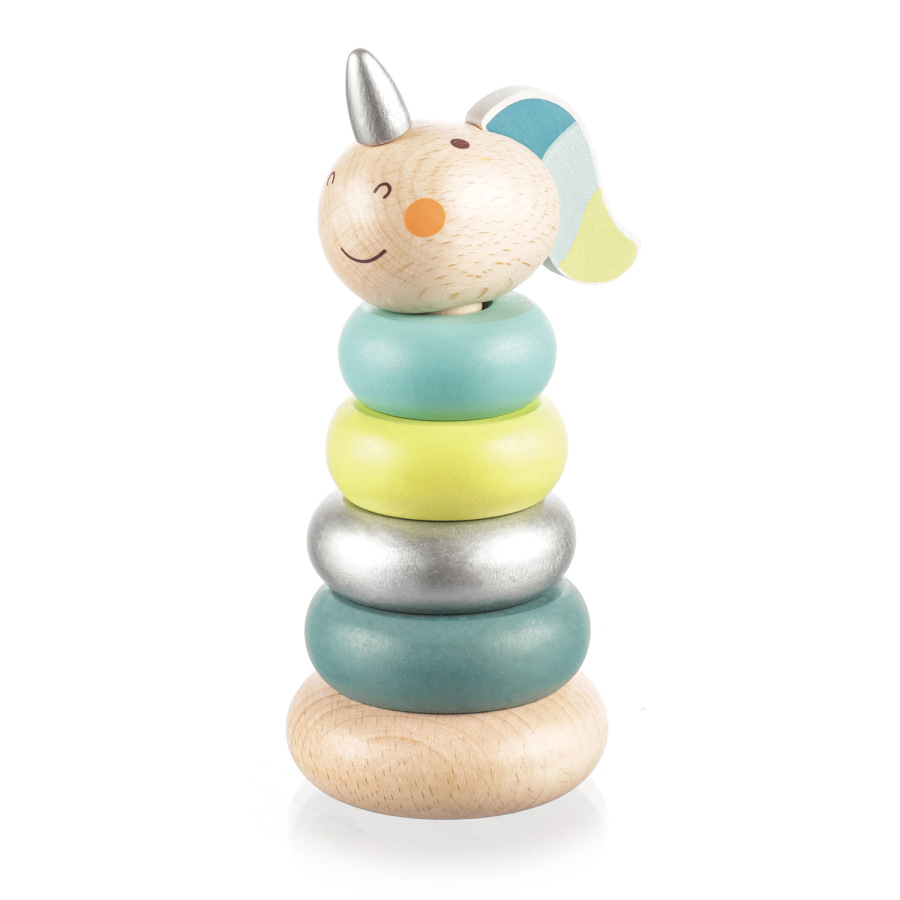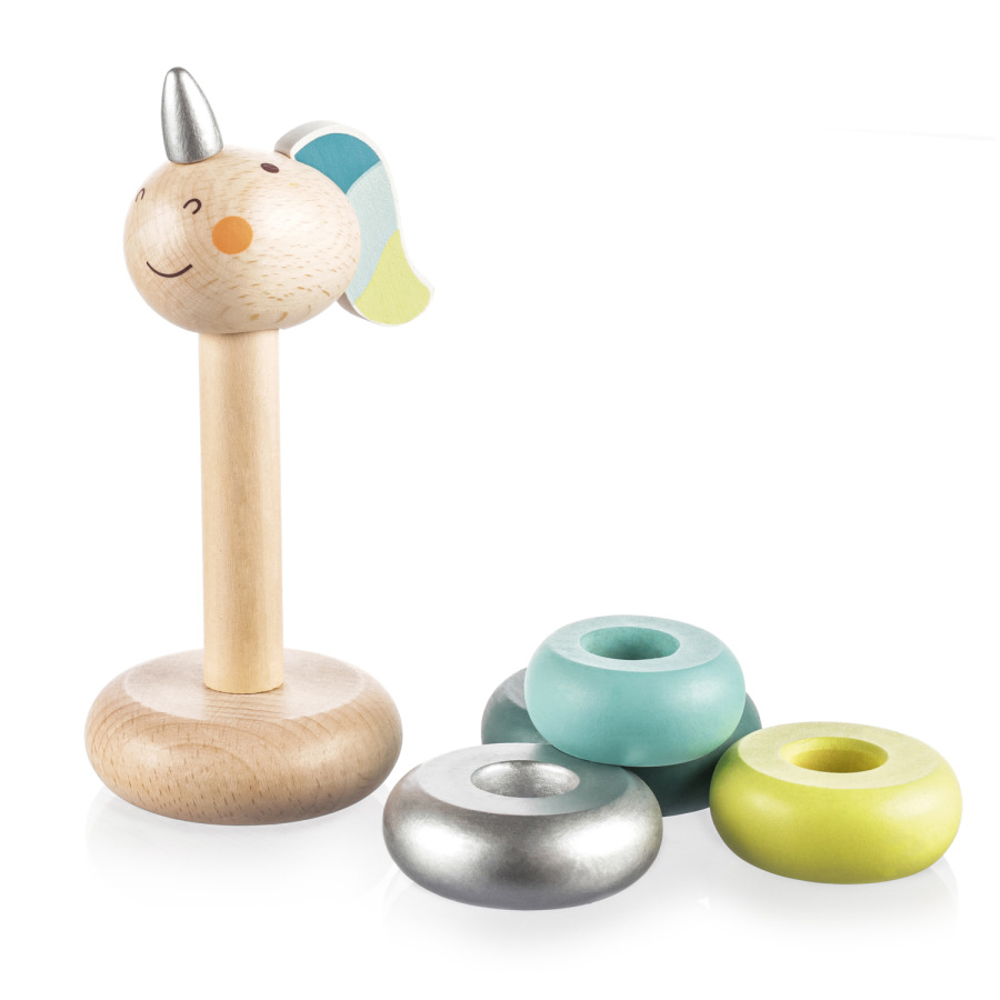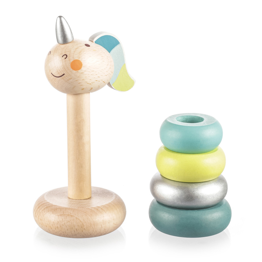Drevené jednorožcové krúžky pre deti od 16 mesiacov.