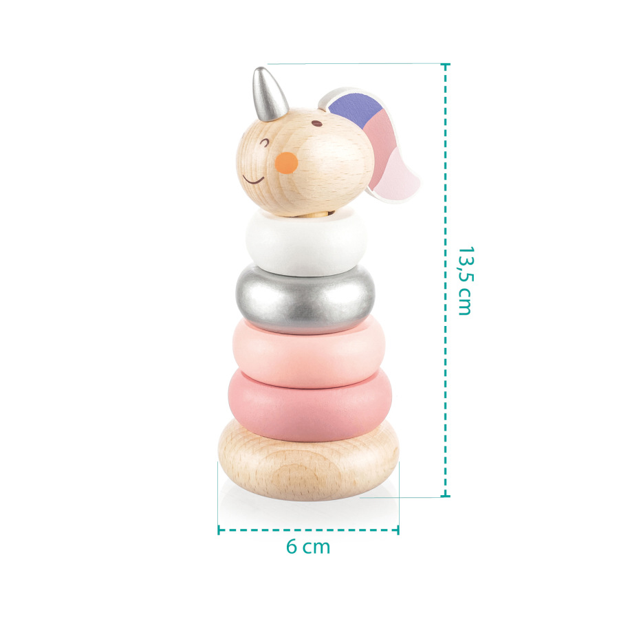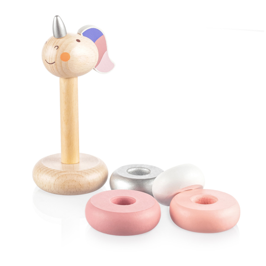 Dřevěné nasazovací kroužky jednorožec, Pink