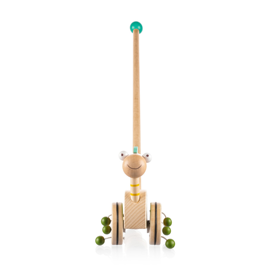 Jazdec na tyči je ideálna hračka pre deti, ktoré začínajú chodiť. Zábavný dinosaurus na dlhej tyči sa pri pohybe otáča a vďaka dreveným korálkam pripevneným ku kolieskam vydáva zvuk, ktorý dieťa láka k chôdzi a zabaví ho na celé hodiny. Robustná tyč slúži aj ako opora pri prvých krôčikoch dieťaťa a na konci je vybavená drevenou guľou pre väčšiu bezpečnosť. Posuvník nemá ostré hrany a je vyrobený z odolného dreva s dlhou životnosťou.