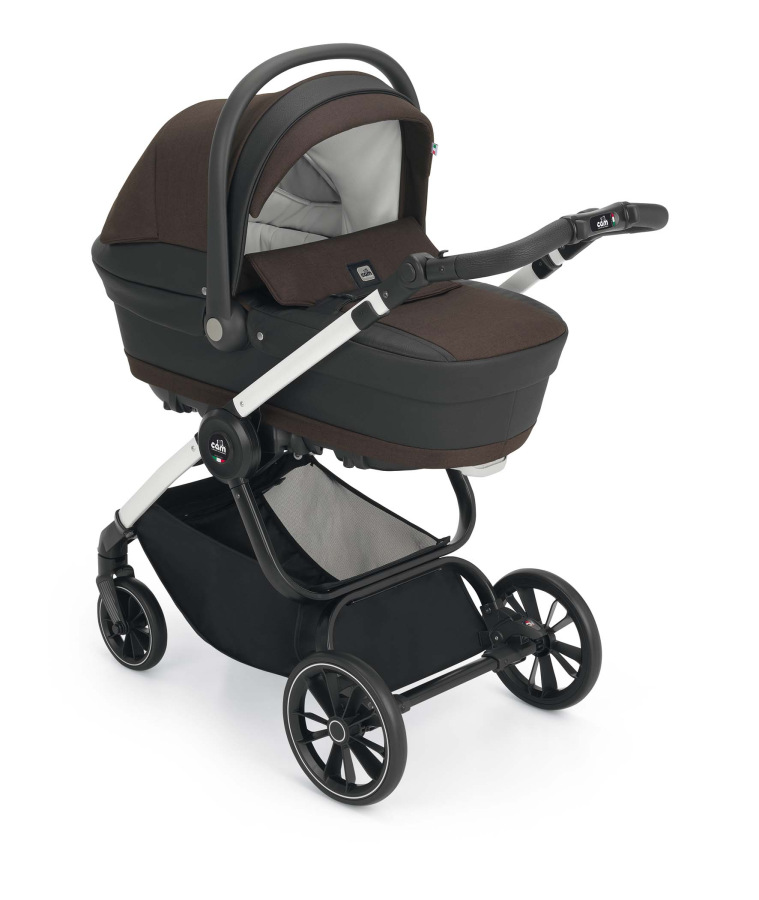 Priestranná elegantná korba je potiahnutá texturovanou tkaninou s ozdobnými prvkami z eko kože. Nánožník hlbokej korby možno ľahko odopnúť pomocou zipsov. Vďaka vetranie na strieške je ideálny aj pre letné mesiace. Korbu možno po vyklopení vzpier na spodku vaničky využívať aj ako kolísku. Pomocou poistky na spodku korby je možné výškovo polohovať hlavičku dieťaťa. Korba má jednoduchý systém odopnutie z podvozku, iba pomocou jednej poistky, pre ešte väčšie bezpečie pri manipulácii s korbou a dieťaťom.