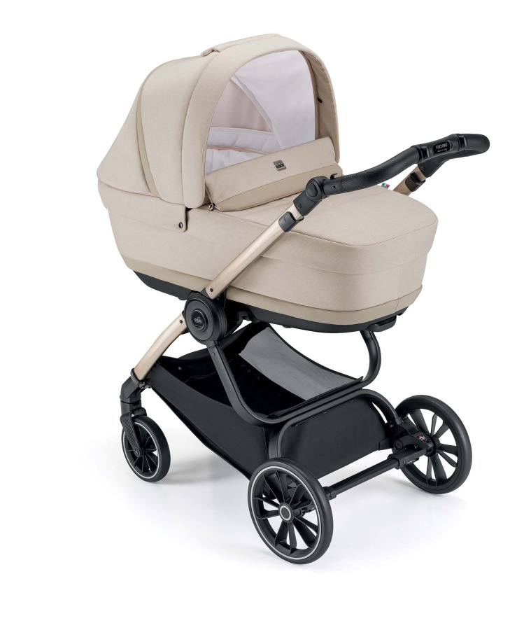 Priestranná korba moderného vzhľadu má pre bezpečnejšiu manipuláciu jednoduchý systém odopnutia z podvozku, a to iba pomocou jedinej poistky. Po vyklopeniu vzpier na spodu vaničky sa dá dokonca použiť ako kolíska, ktorú využijete k ľahšiemu uspávaniu dieťatka doma či na cestách. Pritom sa vám môže hodiť tiež výškové polohovanie hlavičky dieťaťa.