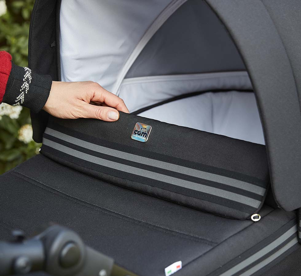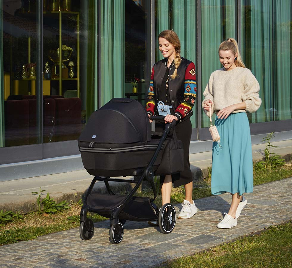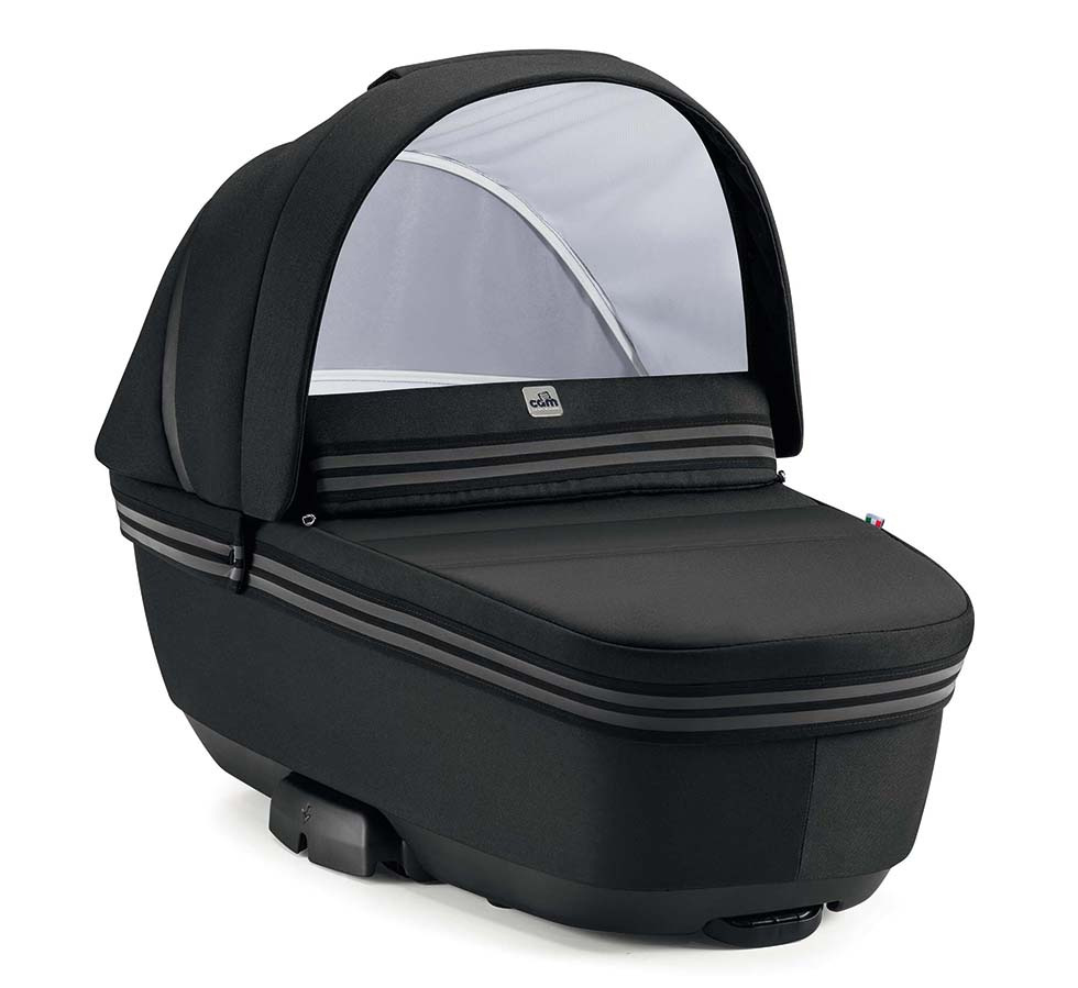 Priestranná korba moderného vzhľadu má pre bezpečnejšiu manipuláciu jednoduchý systém odopnutia z podvozku, a to iba pomocou jedinej poistky. Po vyklopeniu vzpier na spodu vaničky sa dá dokonca použiť ako kolíska, ktorú využijete k ľahšiemu uspávaniu dieťatka doma či na cestách. Pritom sa vám môže hodiť tiež výškové polohovanie hlavičky dieťaťa.