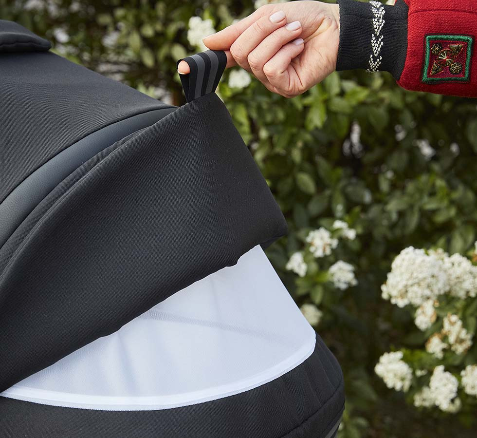 Vanička je vďaka kvalitnému vetraniu ideálna pre letné mesiace. A naopak, v prípade nepriaznivého počasia vám dobre poslúži nánožník s vysokým zatienením. Ten sa pre pohotový prístup k dieťaťu ľahko odpína pomocou zipsov.