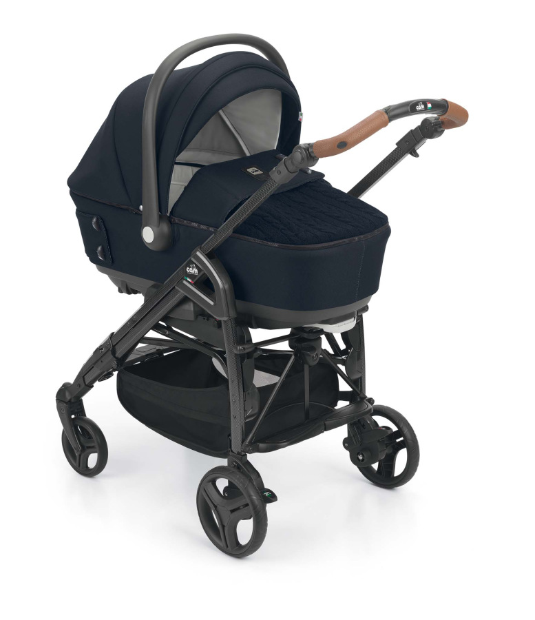 Priestranná korba s moderným vzhľadom a nánožníkom v mäkkom Pleteninová prevedení doplneným o ozdobné kostené gombíky. Nánožník korby možno ľahko odopne pomocou zipsov. Vďaka vetranie na strieške je ideálny aj pre letné mesiace. Korbu možno po vyklopení vzpier na spodku vaničky využívať aj ako kolísku. Pomocou poistky na spodku korby je možné výškovo polohovať hlavičku dieťaťa. Korba má jednoduchý systém odopnutie z podvozku, iba pomocou jednej poistky, pre ešte väčšie bezpečie pri manipulácii s korbou a dieťaťom.