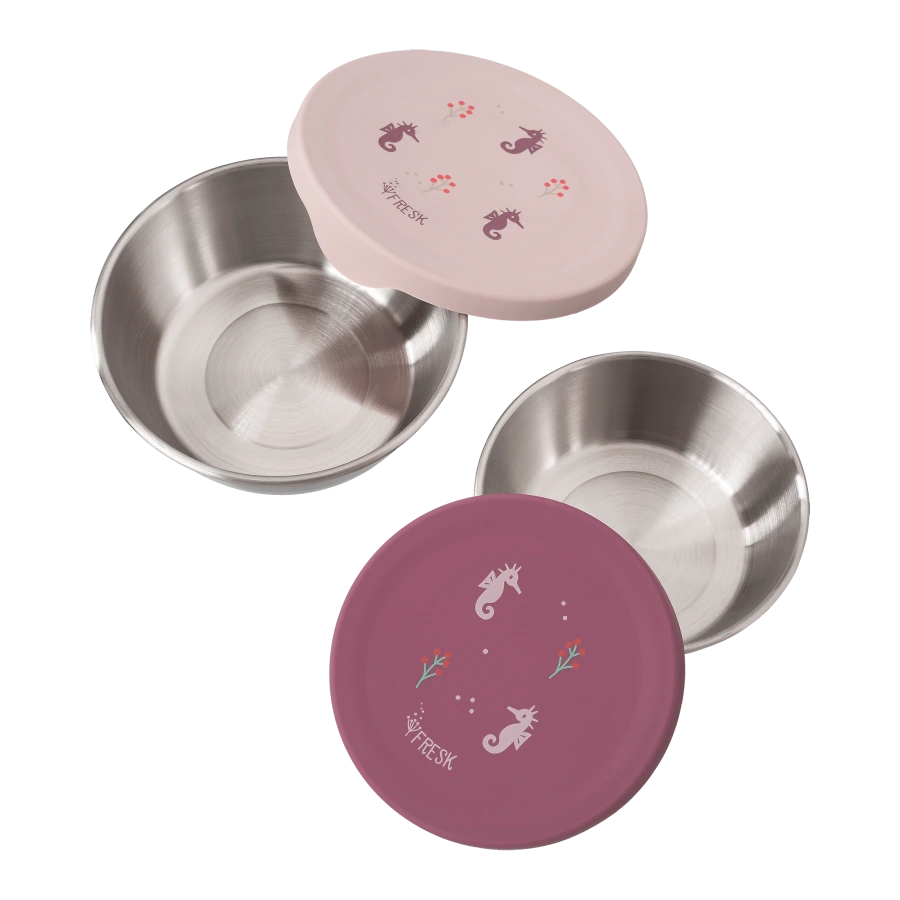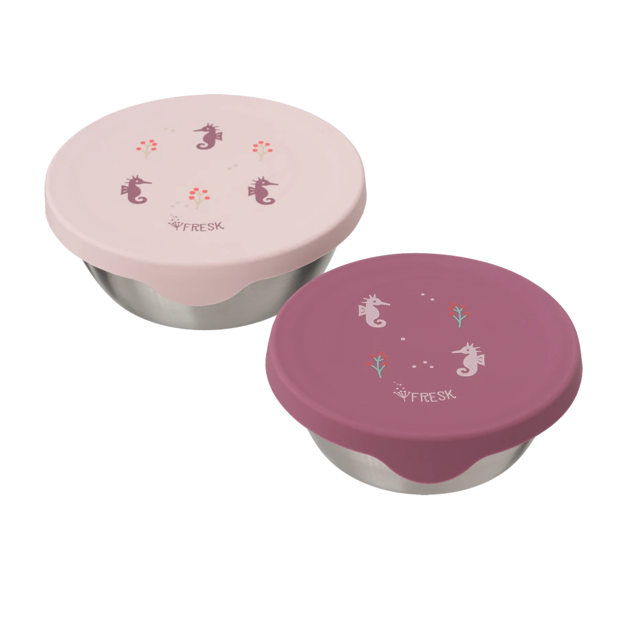 Súprava snack boxov Fresk je ideálnou voľbou pre deti, ktoré si berú desiatu do škôlky, školy alebo na výlety. Ľahké, odolné a zdravotne bezpečné dózy z nehrdzavejúcej ocele udržia ovocie, zeleninu aj menšie pochúťky čerstvé a lahodné. Vďaka silikónovým viečkam ich bez problémov otvoria aj malé detské rúčky – bez rozliatia či zbytočného neporiadku.