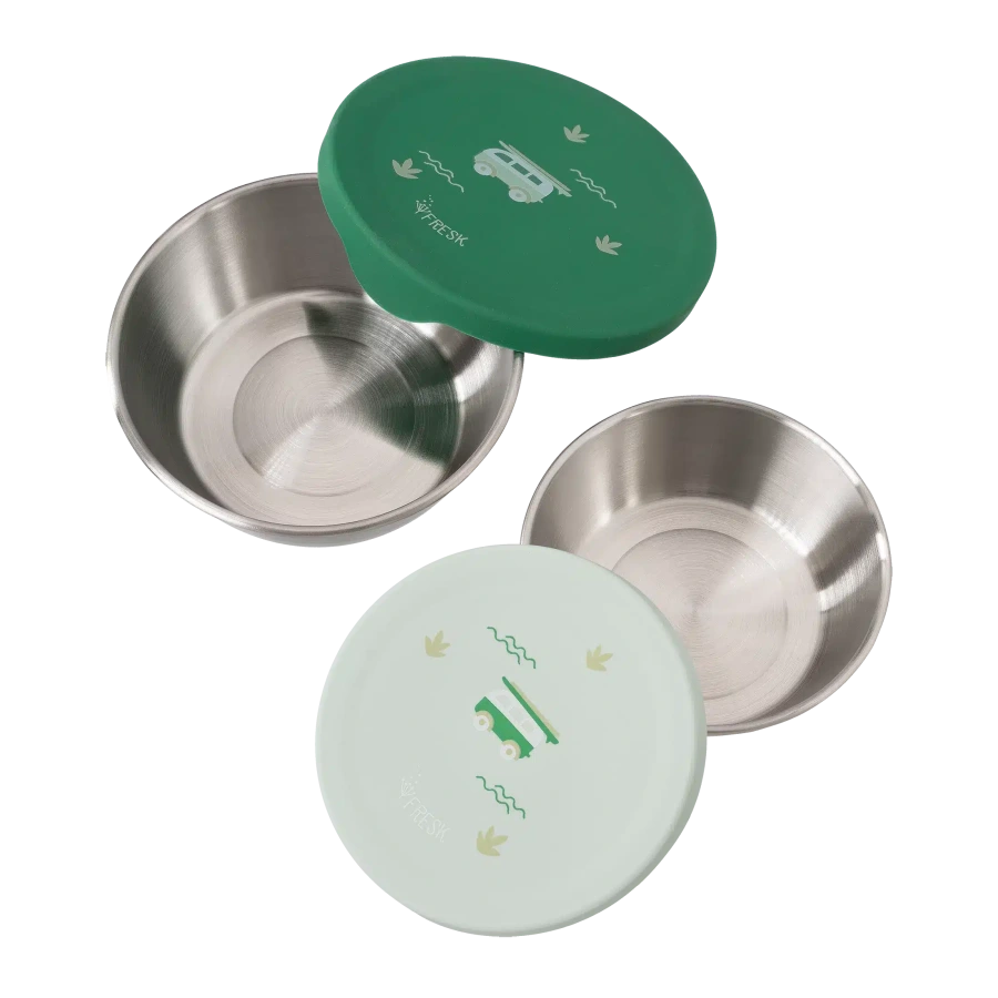 Súprava snack boxov Fresk je ideálnou voľbou pre deti, ktoré si berú desiatu do škôlky, školy alebo na výlety. Ľahké, odolné a zdravotne bezpečné dózy z nehrdzavejúcej ocele udržia ovocie, zeleninu aj menšie pochúťky čerstvé a lahodné. Vďaka silikónovým viečkam ich bez problémov otvoria aj malé detské rúčky – bez rozliatia či zbytočného neporiadku.
